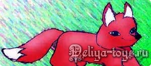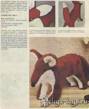 Остается сделать хвост. Для него возьмем проволоку длиной 12 см, слегка обматываем ее нашей набивкой и обшиваем основным материалом. Затем из того же материала вырезаем полоску длиной 30 см и шириной 4 см. Одну сторону полоски надрезаем бахромой и обматываем спиралью проволочную основу. Остается пришить хвост, и лис готов. :)