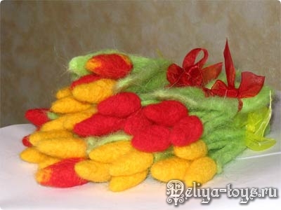Очень интересно, и весьма необычно выглядят сваленные цветы из шерсти.