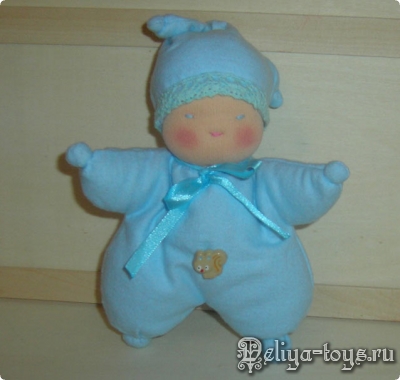 Куколка в пришивной одежде, мягенькая как подушечка, нежная и приятная на ощупь, росточком 21 см Подробнее...