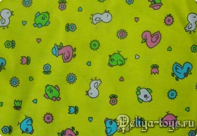 7.8. Желтый трикотаж в птичку. Хочу заметить, что это именно трикотаж, но т.к. вижу его больше в спальных малышах и пупсах - отнесла в эту группу. Но это хороший качественный трикотаж, подойдет для нарядов любой куклы. Цвет очень яркий и сочный.