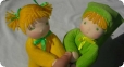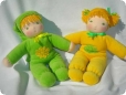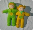 Материалы, которые я использовала при создания малышей - натуральные, как и у всех вальдорфских кукол: эко-трикотаж, нежный, но плотный; хлопковый велюр; шерсть для волосиков; набивка - 100% овечья шерсть. Синтетика есть только в атласных ленточках.