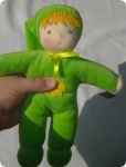 Златовласка Лаймик - маленький мальчик. Глазки и ротик вышиты. На головке мягенький длинный колпак, как у гномика). Сам малыш 26 см. Мягкое щекастое чудо, затискала бы всего :)