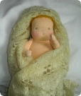 Младенец, авторская куколка по типу вальдорфской. Милая щекастая девочка в 25 см, с пушистыми золотистого цвета волосиками и маленьким хвостиком, как у настоящих маленьких деток .