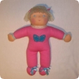 Девочка получилась 26 см, держать в руках - одно удовольствие! Состоит из натуральных материалов (помимо атласных ленточек) - экотрикотаж для головы и ручек, плотный качественный трикотаж для комбинезона и аппликации-бабочки, хлопковое кружево, сливер для набивки. Как вы видите, мелких деталей нет, что делает куколку более безопасной для маленького ребенка (особенно во время сна).
